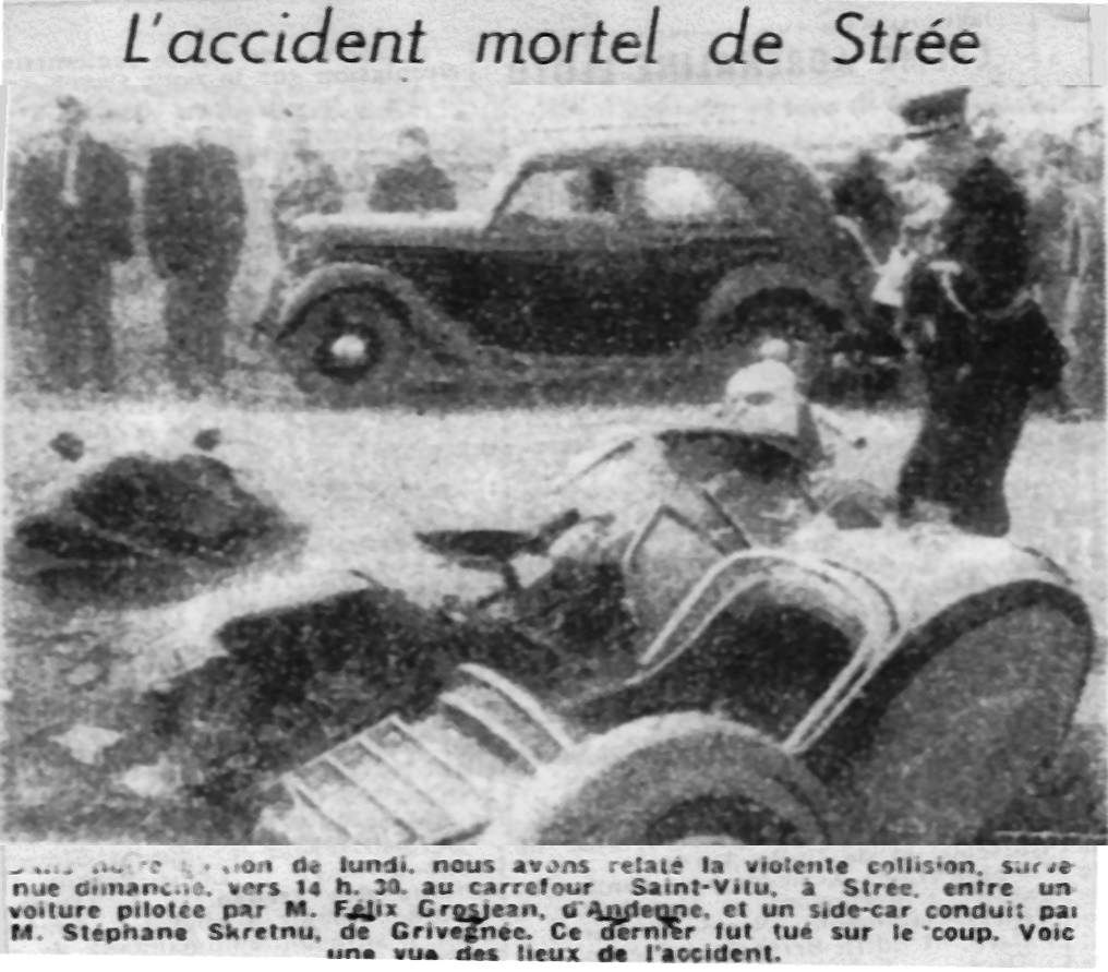Poprzedni obrazek Następny obrazek S.Skretny Fotokopia notatki prasowej dotyczącej wypadku w którym zginął Stefan Skrętny jadąc motocyklem ca 1949.