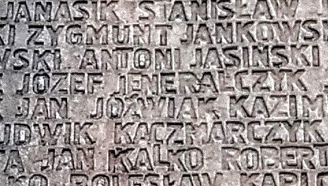 Inskrypcja Józefa Jeneralczyka na Memoriale