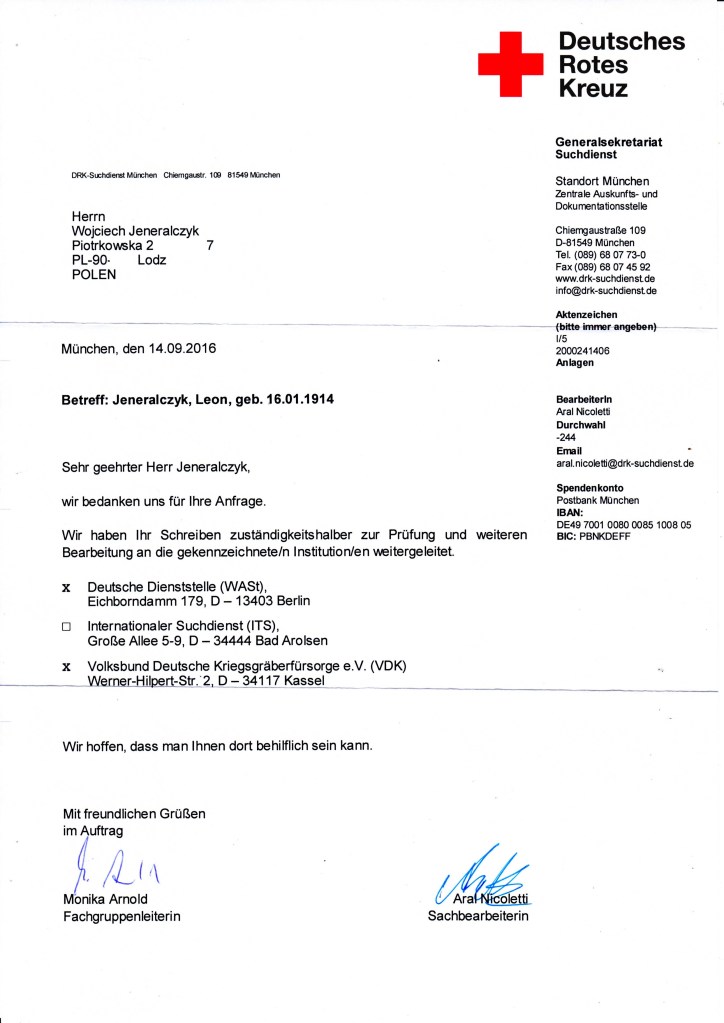 Tłumaczenie : „Dziękujemy za Twoje zgłoszenie, informujemy że możemy przekazać Twój list według zakresu kompetencji, do przeglądu i dalszej rozpracowania właściwym instytucjom które wymieniamy :