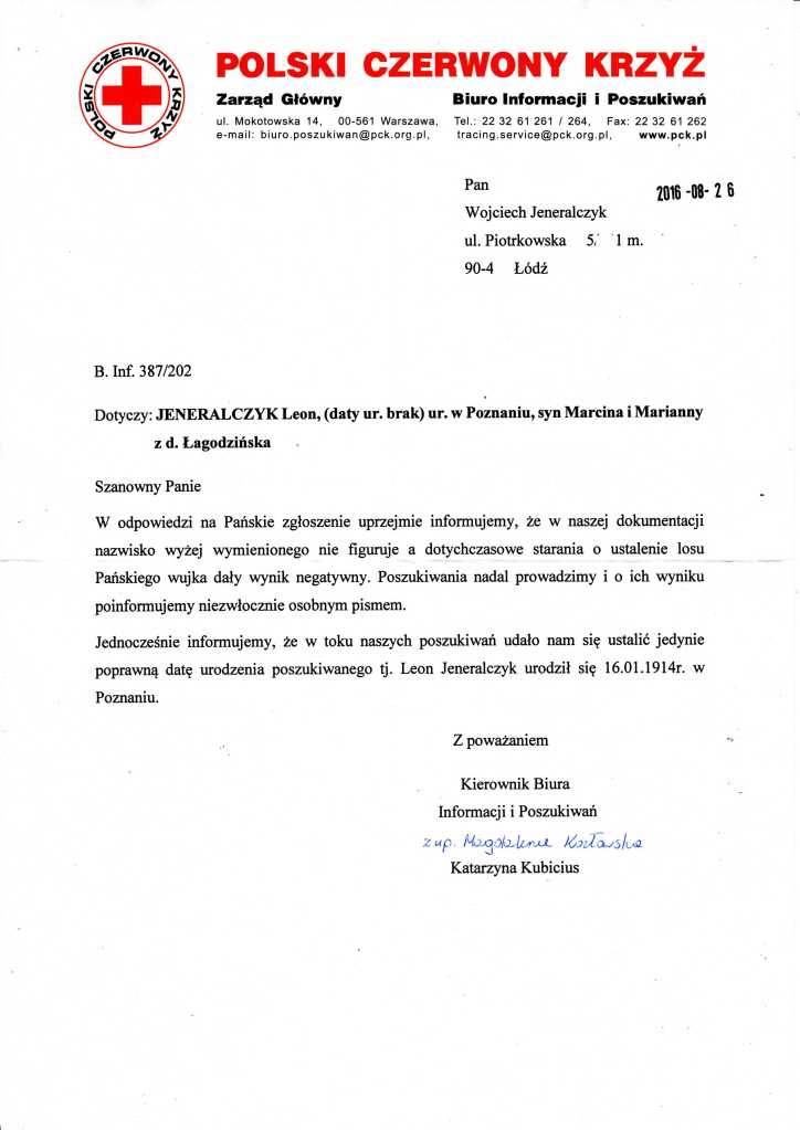 Poprzedni obrazek Następny obrazek odpowiedzpck_k Fotokopia Pisma PCK jako odpowiedzi na zapytanie o stan poszukiwań stryjka Leona. Fotokopia Pisma PCK jako odpowiedzi na zapytanie o stan poszukiwań stryjka Leona.