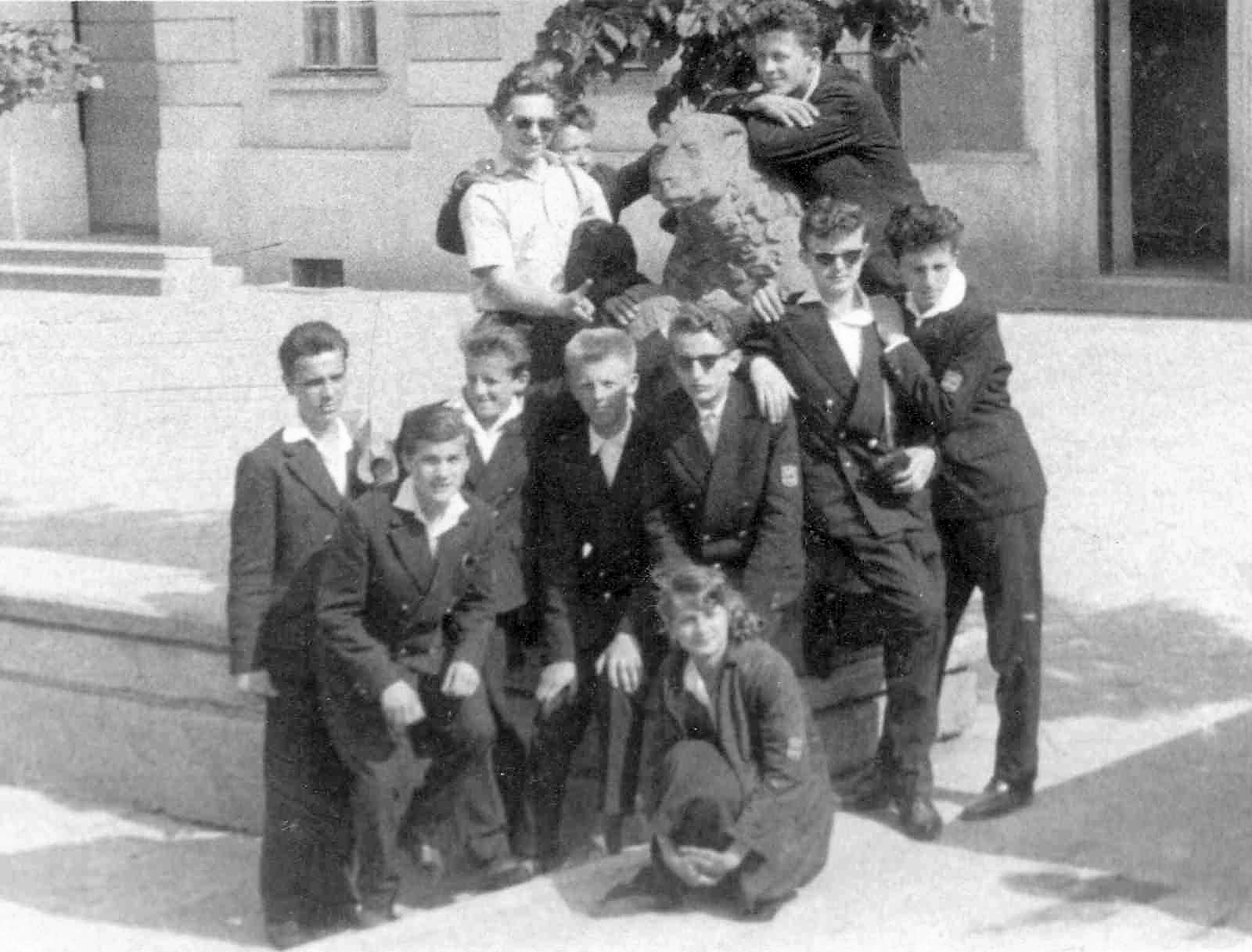Wycieczka TE do Warszawy 1962. Ja stoję nad Jadzią Wysocką, drugi z lewej Sławoj Kądziela, w białej koszuli na górze Andrzej Rzęsista.