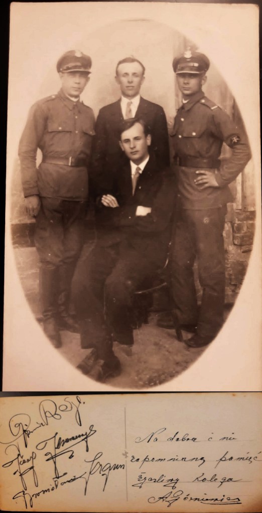 Poprzedni obrazek PamiątkaGórniewicz Pamiątkowe zdjęcie pp. z kolegami odchodzącymi do cywila z posterunku KOP. Józef pierwszy po lewej.