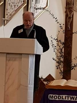 Poprzedni obrazek Następny obrazek Świadectwo Czytam modlitwę wiernych podczas dorocznej mszy rocznicowej w asyscie urn z proczami poległych na czterech Cmentarzach wojennych Nieludzkiej Ziemi.