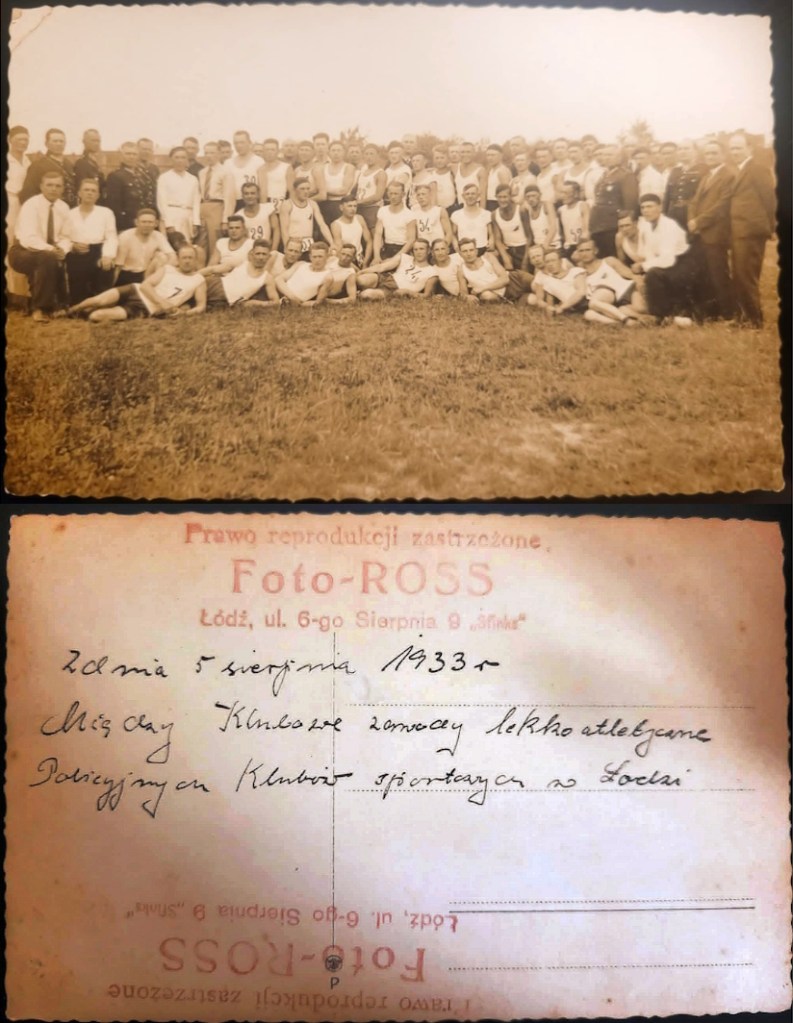 Poprzedni obrazek Następny obrazek ZawodyPolicyjne 5 sierpnia 1933 fotografia pamiątkowa z między klubowych zawodów lekkoatletycznych Policyjnych Klubów Sportowych w Łodzi.