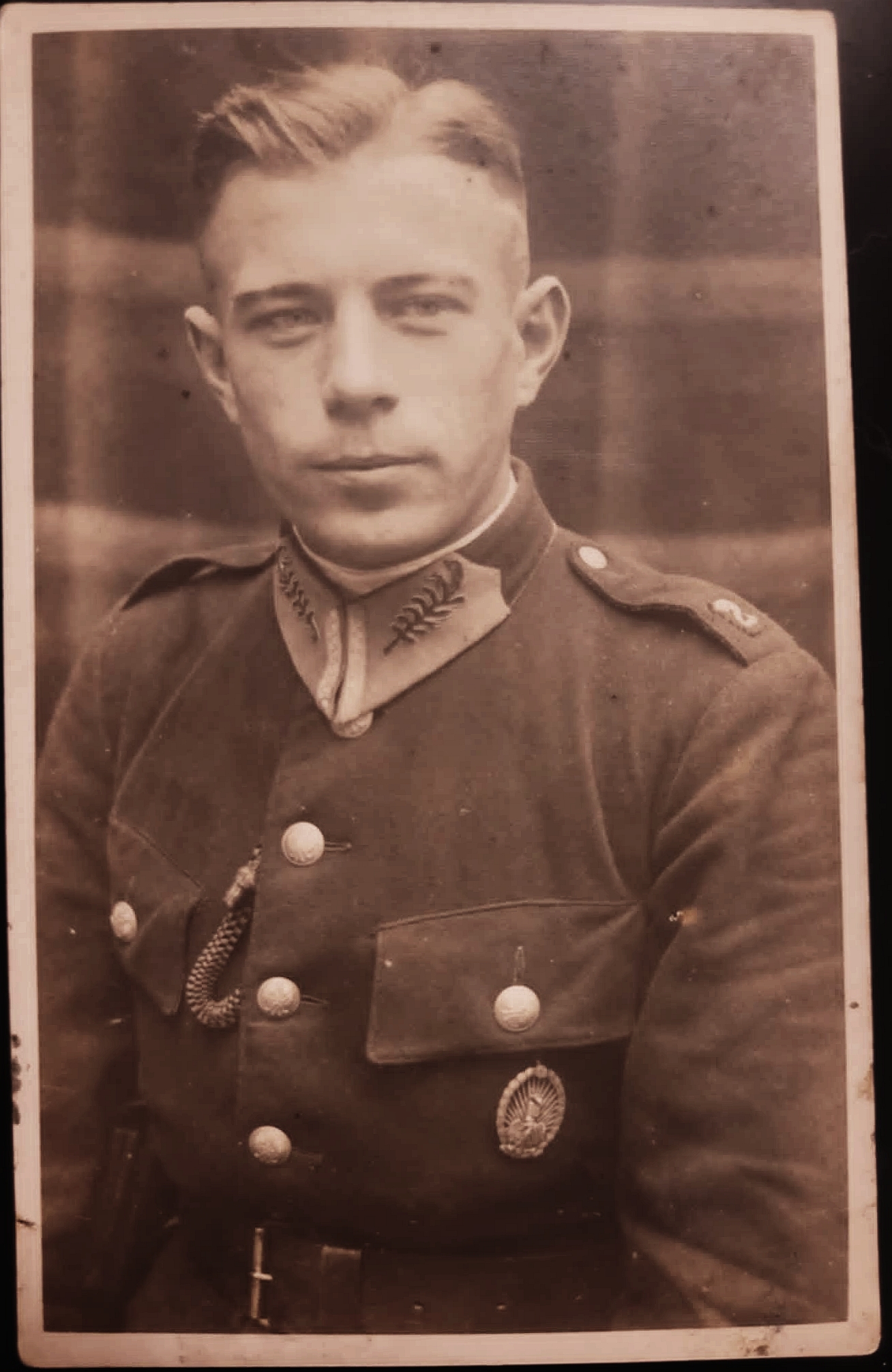 Poprzedni obrazek Następny obrazek Józef1938 Jozef Jeneralczyk około 1938 roku tuż po ponownym powołaniu do służby czynnej w Policji Państwowej (na lewej kieszonce widoczna odznaka KOP „Za Służbę Graniczną”). Zdjęcie ze zbiorów pozostawionych przez żonę, Leokadię Jeneralczyk