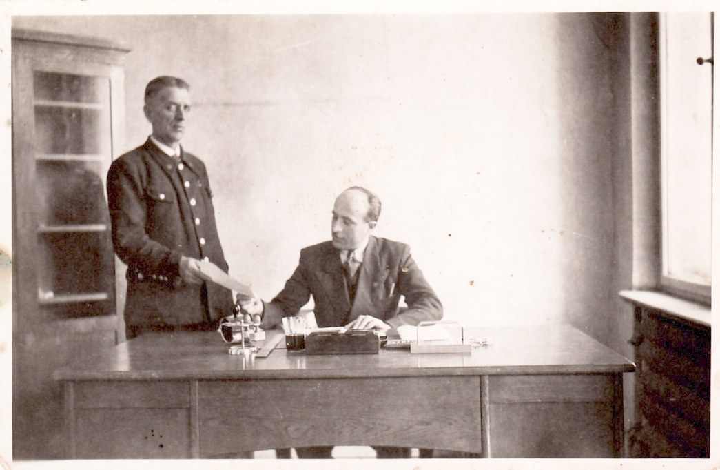 Poprzedni obrazek Następny obrazek Kier.WMieszk.UM+Maj Jako Naczelnik Wydziału Lokalowego w Łodzi 1945 z woźnym panem Majem