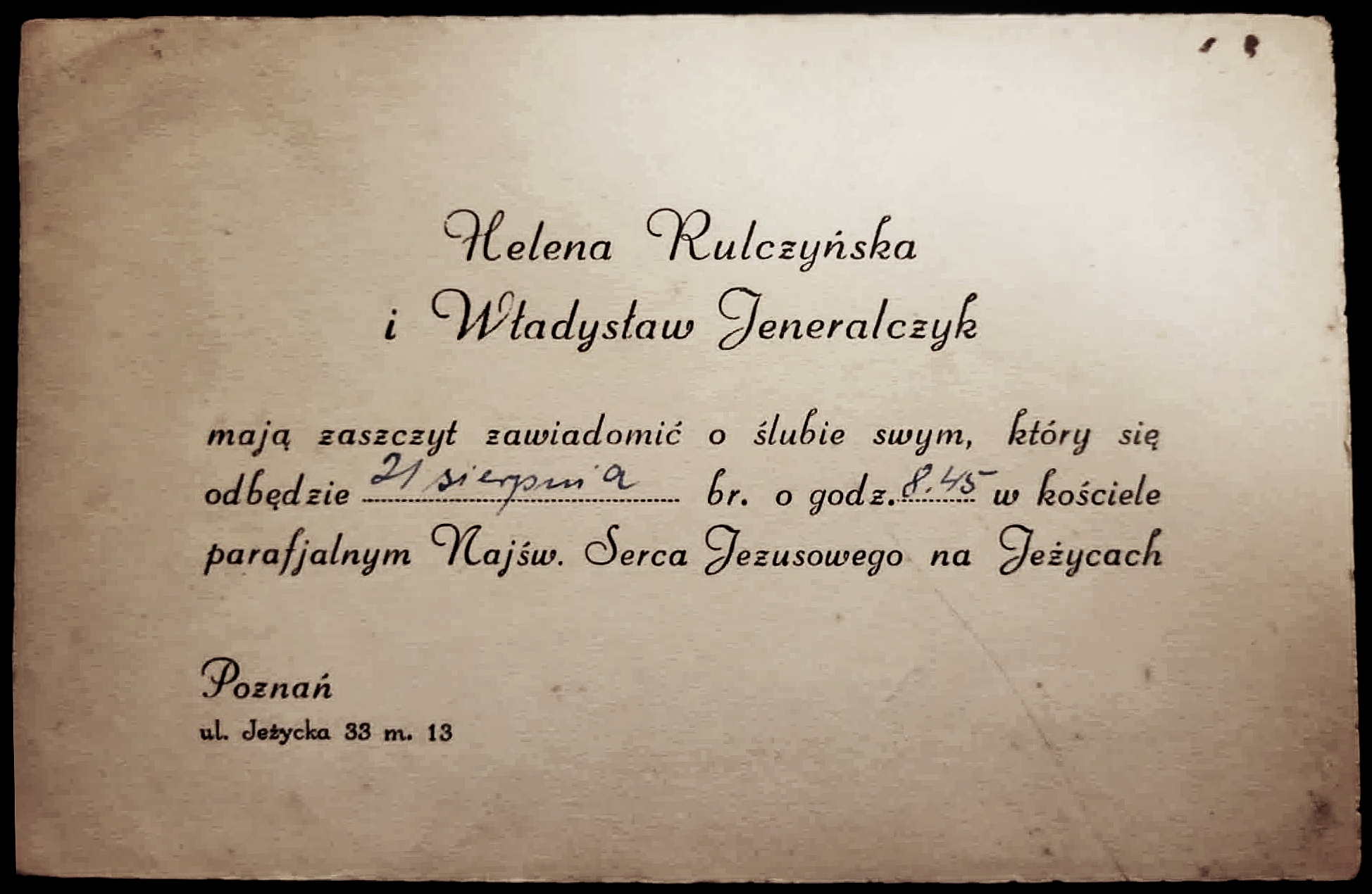 Poprzedni obrazek WładHelena1937 Zawiadomienie o ślubie moich rodziców Heleny i Władysława w 1937 roku. Zdjęcie ze zbiorów pozostawionych przez żonę brata Józefa, Leokadię Jeneralczyk