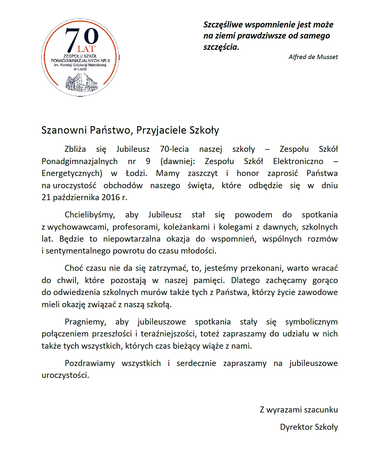 Zaproszenie dyrektor Szkoły pani Henryki Michalskiej.