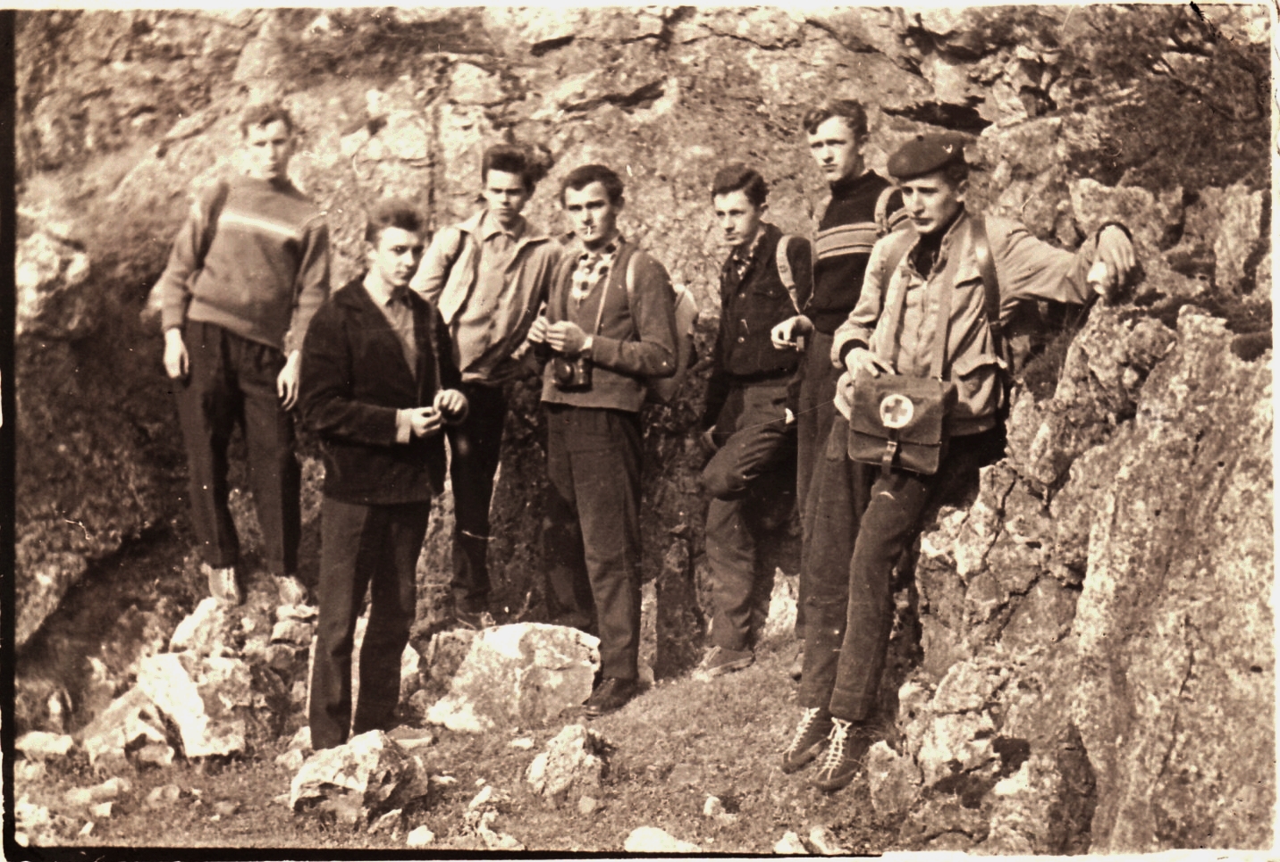 Poprzedni obrazek Następny obrazek RS-jes1961-3 Rajd Świętokrzyski, jesień 1961. Stoję z apteczką, pierwszy od prawej.