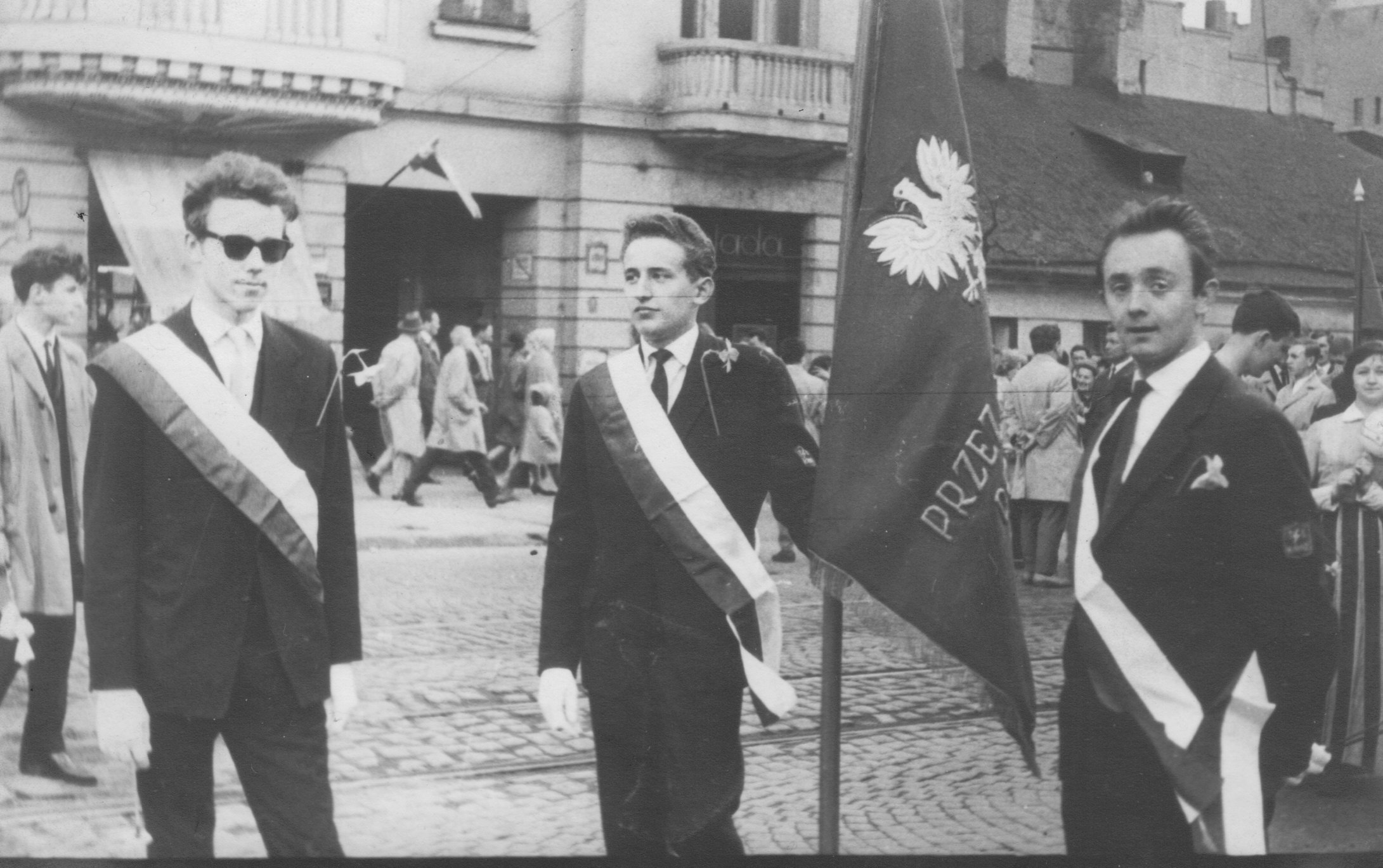 Pochód 1 – majowy 1962. Jako sztandarowy Szkoły.