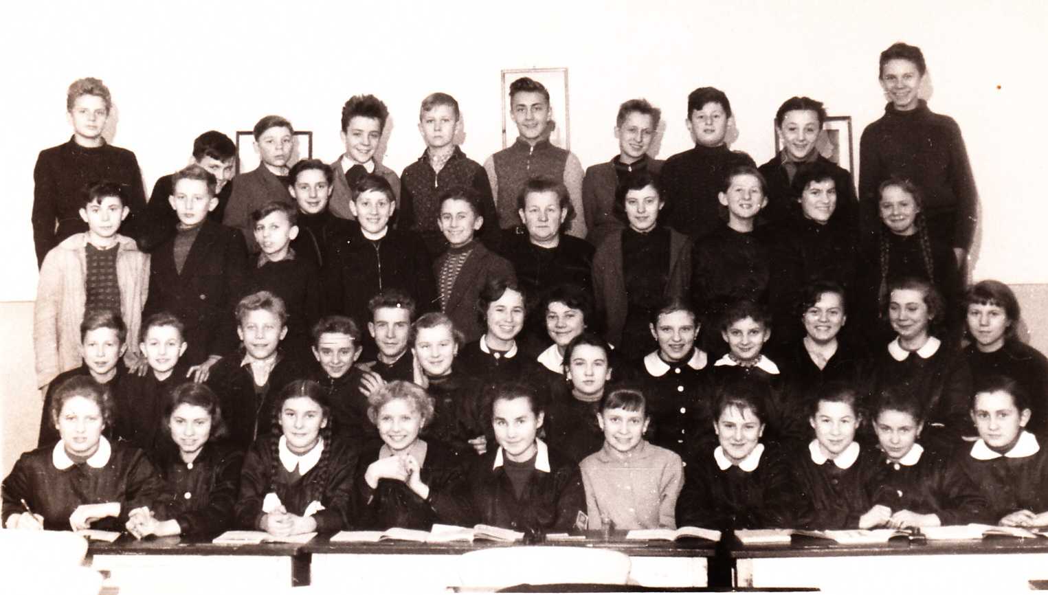 Poprzedni obrazek Następny obrazek VII_1957_1 Klasa VII Szkoły Podstawowej nr 17 w roku 1957 przed ukończeniem nauki. Stoję w rzędzie drugim od góry, druga główka od lewej.