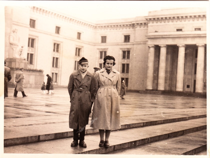 Poprzedni obrazek Następny obrazek Wa_wa_1958 Warszawa przed PKN w 1958 roku. Jako świeżo upieczony uczeń Technikum Energetycznego z siostrą Joanną.