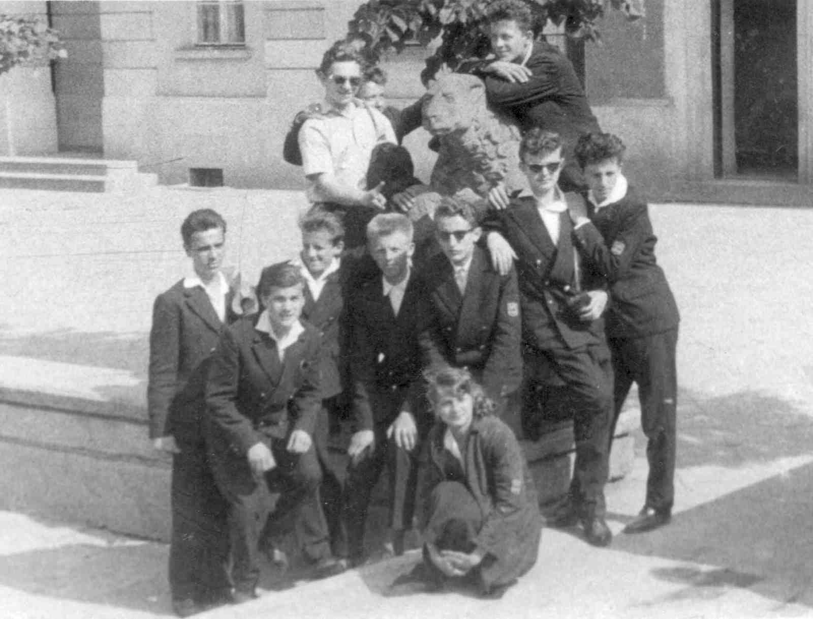 Poprzedni obrazek Następny obrazek wycieczka TE Wycieczka do Warszawy, wiosna 1962 roku. Stoję trzeci od prawej nad Jadzią Wysocką.