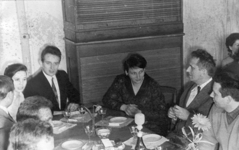 Marzec 1969 roku, uroczyste wręczenie Dyplomów, bankiet pożegnalny. Po lewej Jagódka, Ja, Pani Krystyna Krajewska Szefowa Laboratorium Fotografii Technicznej KAE (mama Konrada późniejszego Kardynała KK), dr Zdzisław Jan Tarociński – nasz promotor, Sylwan.