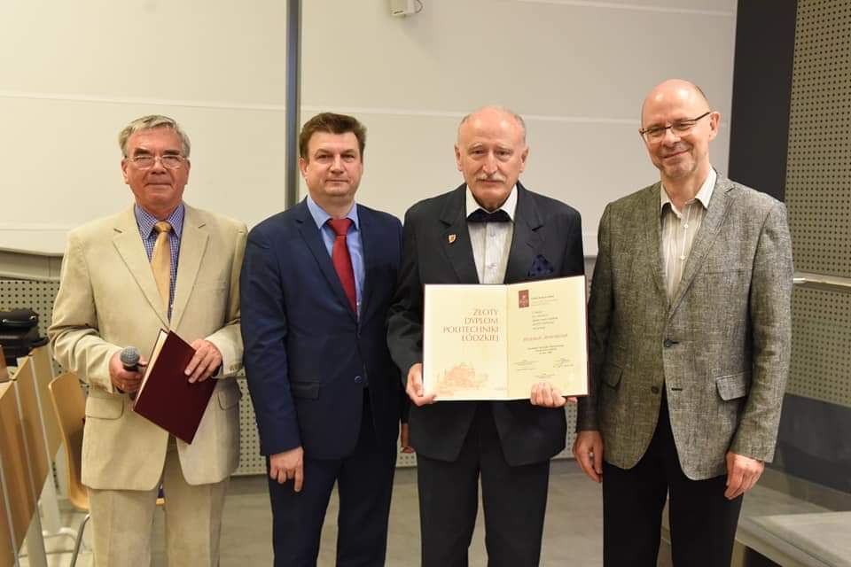 Poprzedni obrazek Następny obrazek ZłDyplom2019-5 Odbieram Złoty Dyplom. Od lewej Piotr Kowalewicz, Jacek Szer – prezes SWPŁ, po prawej Sławomir Hasman – Dziekan WEEIiA