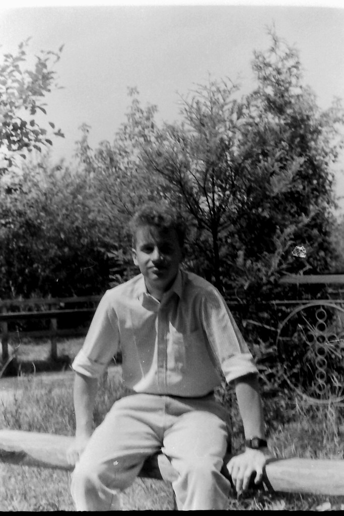 Poprzedni obrazek Następny obrazek 1989-12 1989 – Sulejów Polana i Adaś siedzący na tle sadu naszego domu letniskowego..