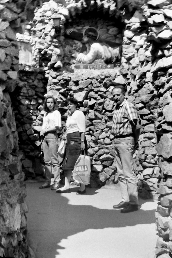 1990 – Licheń Stary spacer po terenie Sanktuarium podczas wycieczki autokarowej do Chełmna i Lichenia, idziemy Drogą Krzyżową Grotami Golgoty, góry usypanej z kamieni, otoczaków przez lata wielu dekad, przywożonych w torbach przez pielgrzymów ze swoich stron rodzinnych. Budowę Bazyliki erygowano w 1994 roku.