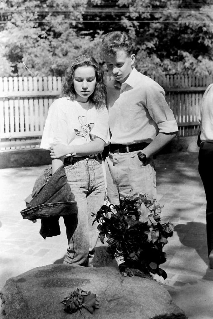 Poprzedni obrazek Następny obrazek 1990-4 1990 – Licheń Stary spacer po terenie Sanktuarium podczas wycieczki autokarowej do Chełmna i Lichenia, stoimy przed Źródełkiem. Budowę Bazyliki erygowano w 1994 roku.