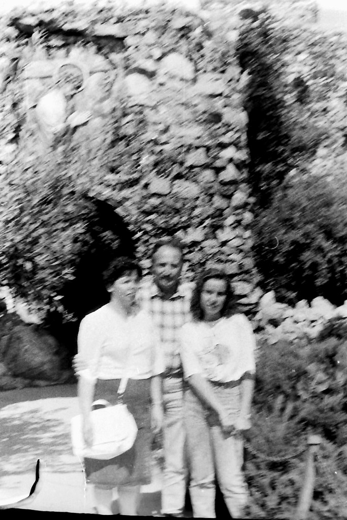Poprzedni obrazek Następny obrazek 1990-5 1990 – Licheń Stary spacer po terenie Sanktuarium podczas wycieczki autokarowej do Chełmna i Lichenia, stoimy przed Grotą Golgoty. Budowę Bazyliki erygowano w 1994 roku.