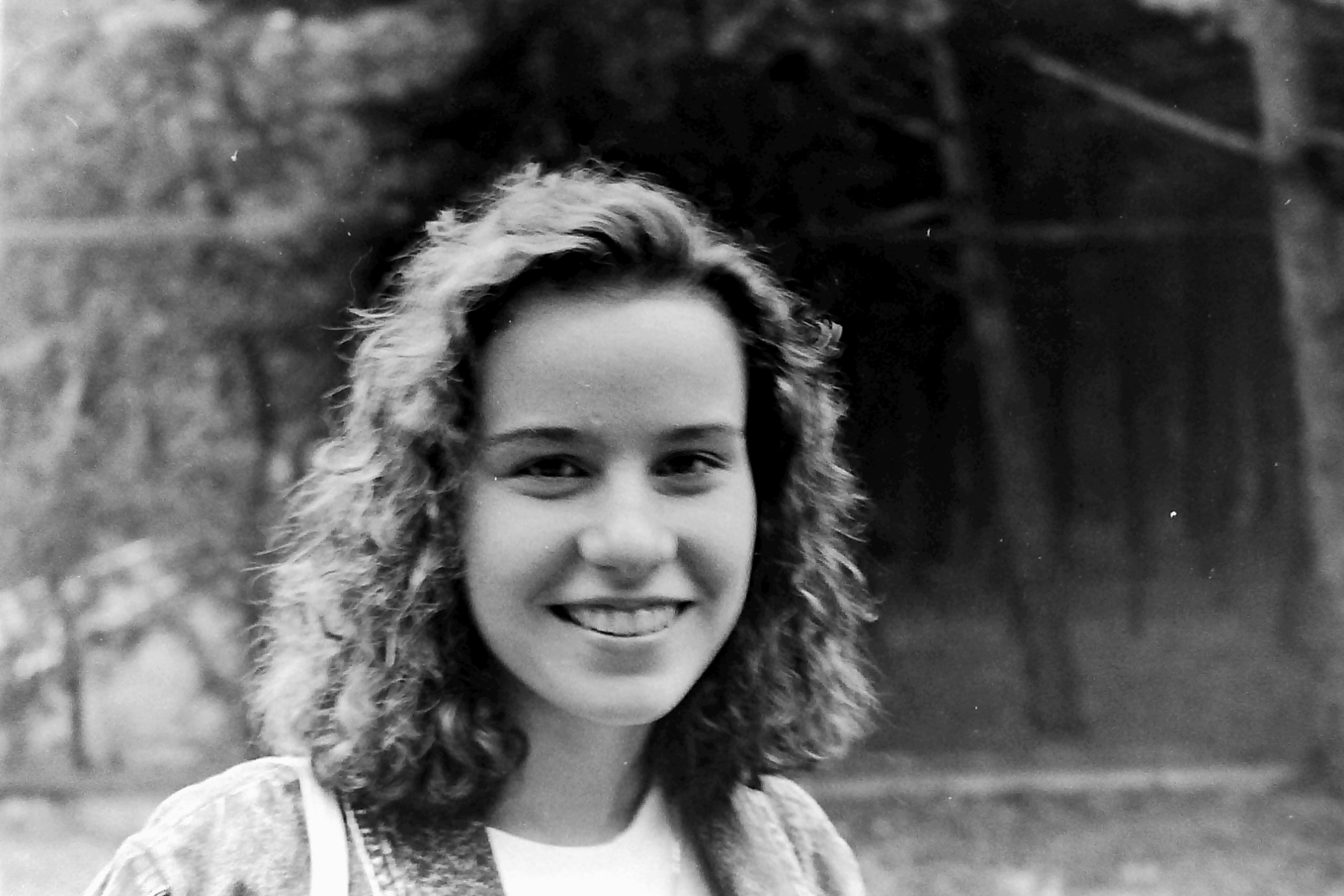 Poprzedni obrazek Następny obrazek 1990-7 1990 – Księże Młyny nad Wartą, Ania portretowo podczas spaceru po leśnej okolicy OW Almatur.