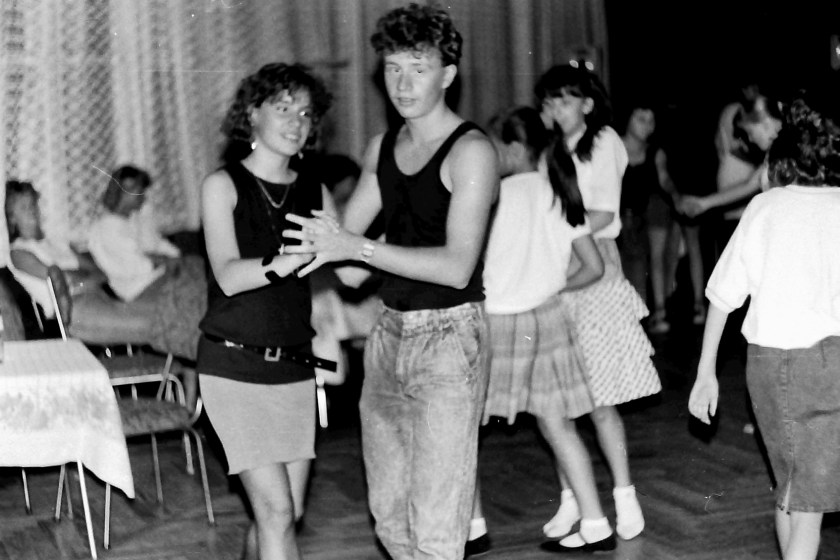 Poprzedni obrazek Następny obrazek 1991-13 1991 – wieczorek klubowo-taneczny, dyskoteka dla dzieci i młodzieży wczasowiczów w DW FWP Widok. Ania i Adaś dawali dynamiczne i oryginalne w układzie popisy taneczne w stylu slow i rock.