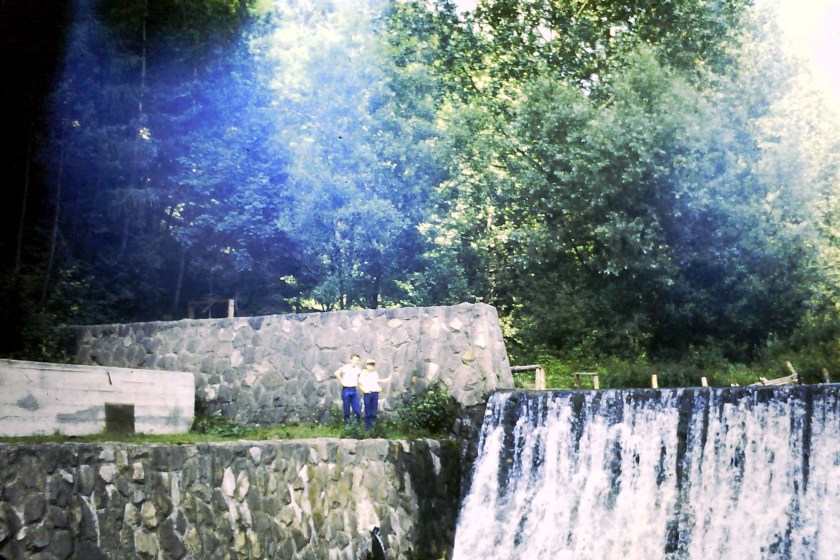 1987 – Ania i Adaś na stopniu wodnym Popradu w Barcicach.