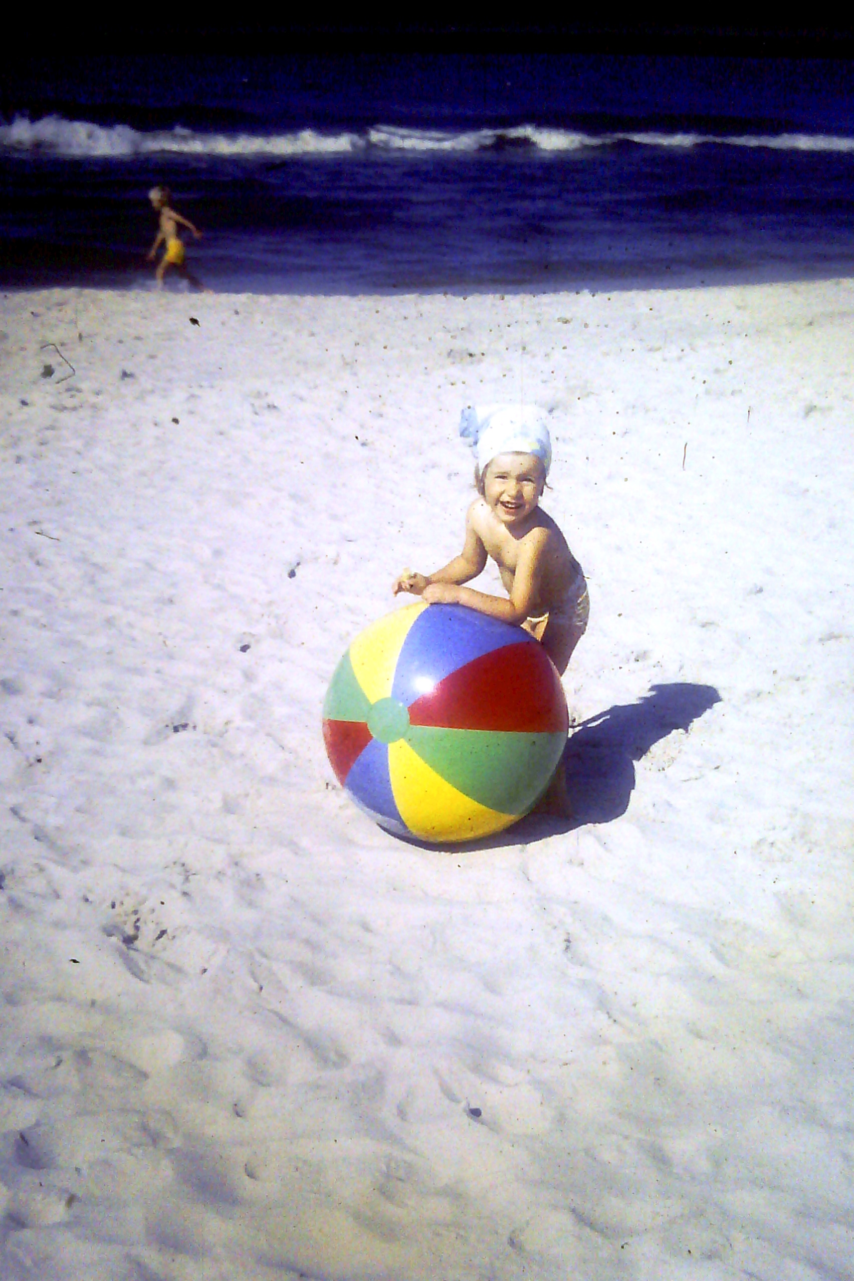 Poprzedni obrazek Następny obrazek 76Karwia-4 1976 – lato na piaszczystej plaży w Karwii nad Bałtykiem. Ania bawi się nadmuchaną piłką przywiezioną z Czechosłowacji w 1973 roku.