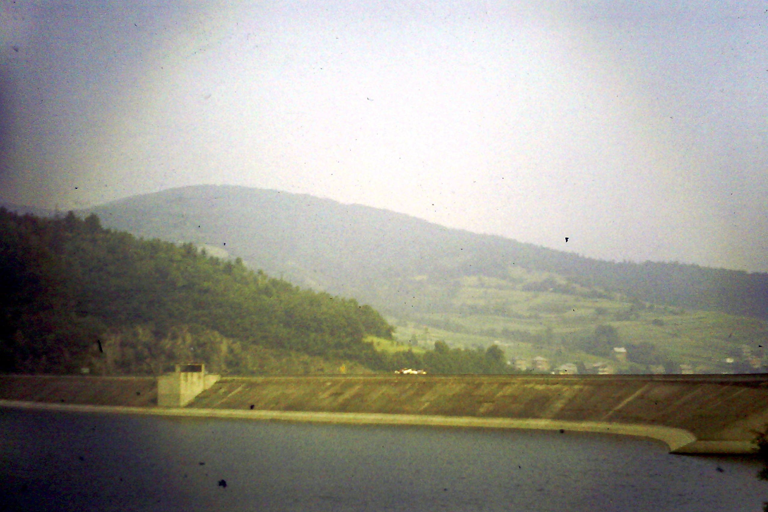 Poprzedni obrazek Następny obrazek 85-4 1985 – Widok na zbiornik wodny na Sanie z płyty tamy Elektrowni Wodnej Myczkowce.