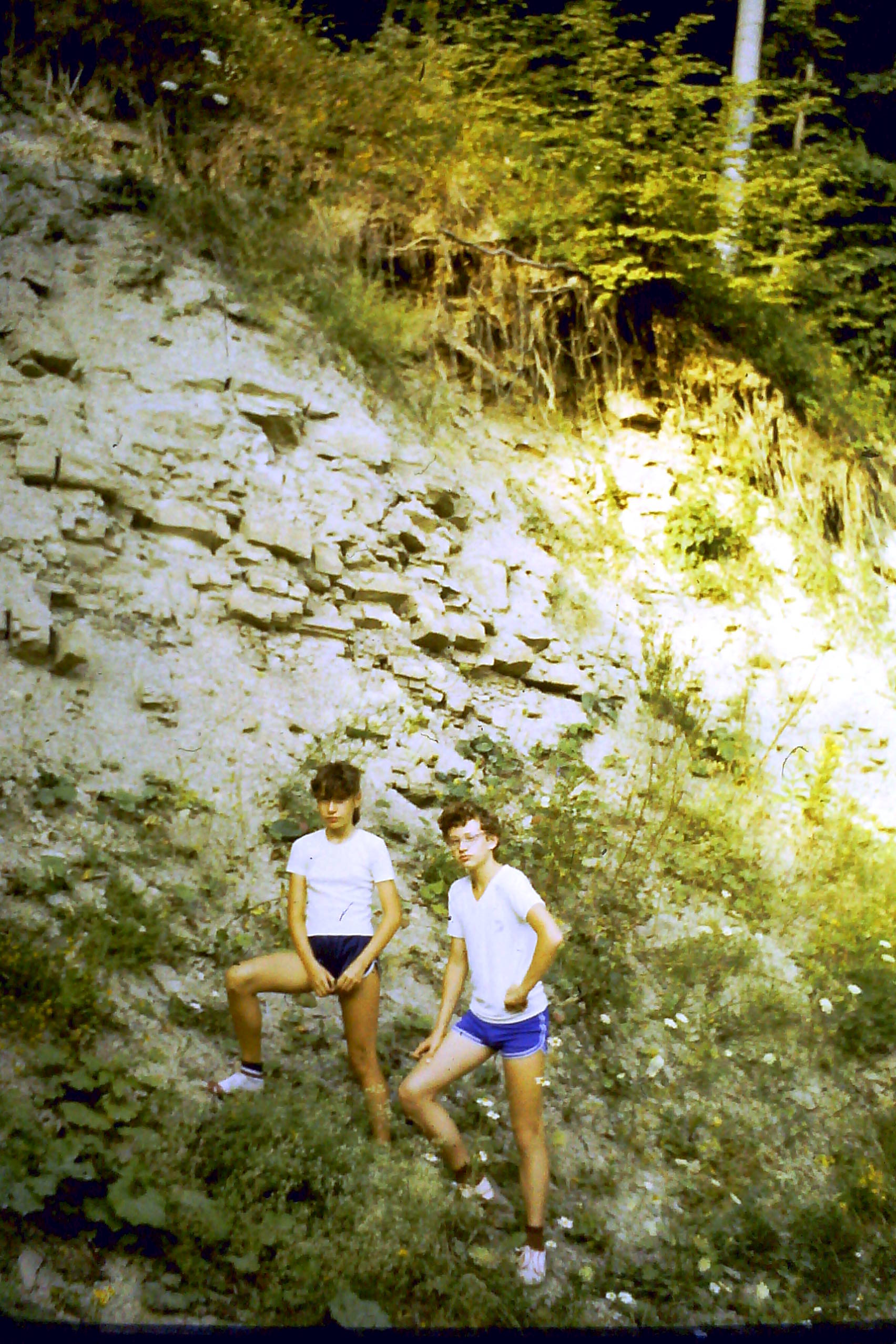 Poprzedni obrazek Następny obrazek 85-5 1985 – Myczkowce, w tle widoczne niebezpieczne skaliste miejsce kontaktu szosy Myczkowce – Solina, bezpośrednio graniczące z czynnym kamieniołomem.