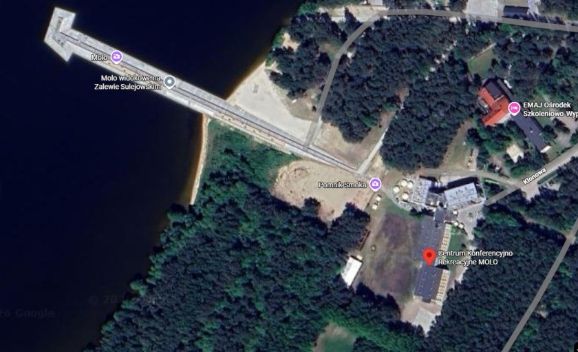 Poprzedni obrazek Następny obrazek CKR Molo GMap 2026 – Współczesny Ośrodek Hotelowy MOLO nad Zalewem Sulejowskim w Smardzewicach ulica Klonowa 16. Foto : Google Map.