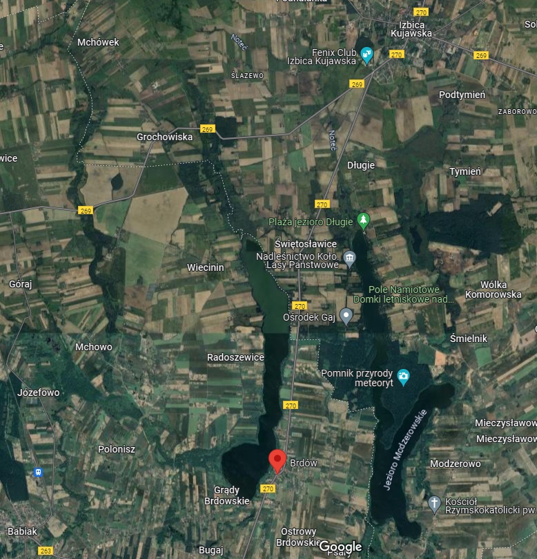 Poprzedni obrazek Następny obrazek DługieIzbica Kujawy wschodnie, szosa 270; Włocławek – Koło. Brdów nad jeziorem Brdowskim, Nadleśnictwo oraz wieś Długie nad jeziorem Długie, Ośrodek Gaj dawna pustelnia klasztorna.