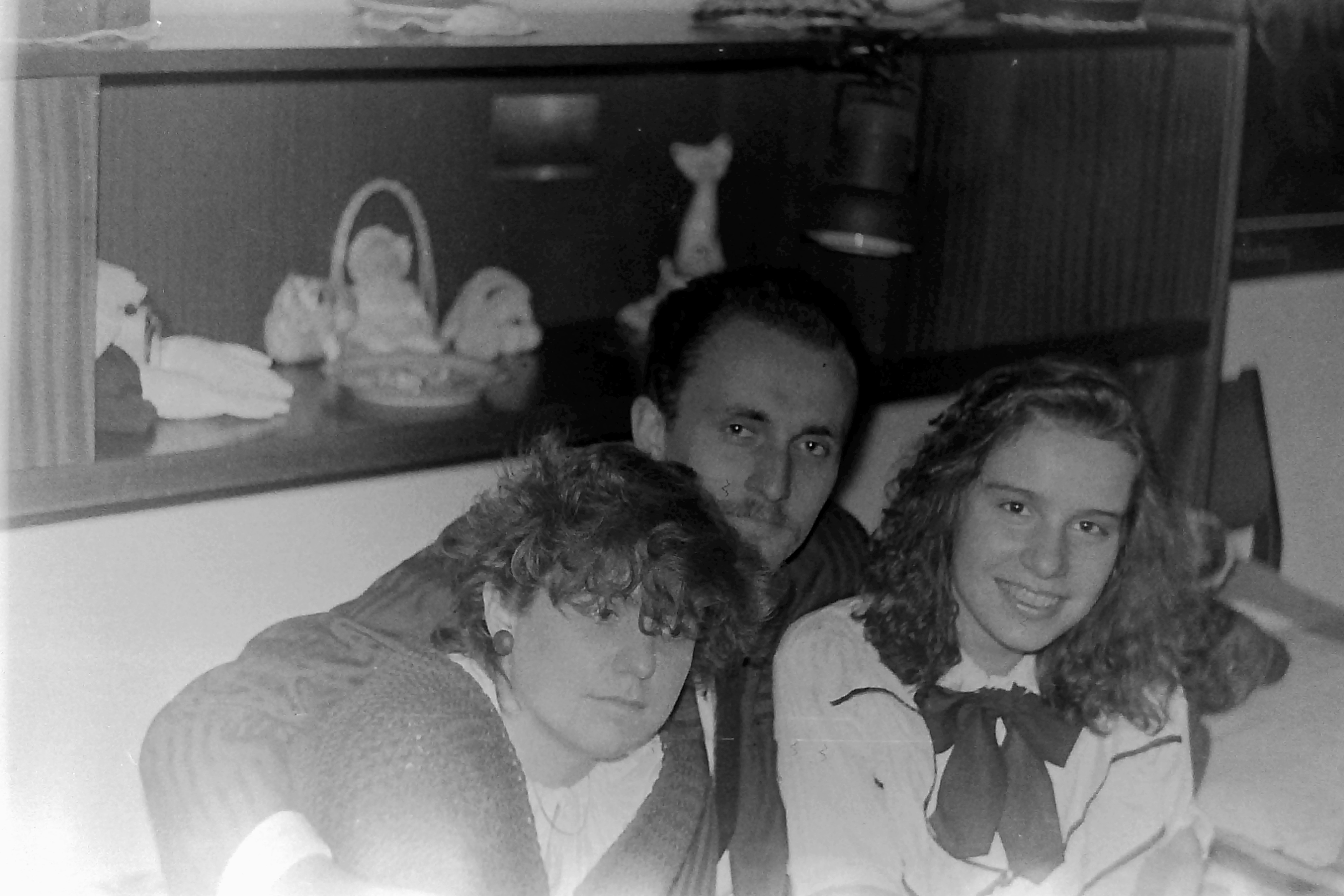 Poprzedni obrazek Następny obrazek EwAnnSlaw 1989 – Siostrzenica Ewa, siostrzeniec Sławek Dałkowscy i Ania, siedzą na tapczanie półce w pokoju Ani na Piotrkowskiej