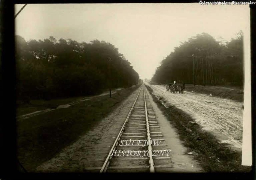 „Budowa kolei była niezbędna ze względu na konieczność obniżenia kosztów transportu wapna i zły stan szosy sulejowskiej.”. Zdjęcie z około 1905 roku pokazuje bardzo zły stan drogi Sulejów – Piotrków, nowe tory sprawiają doskonałe wrażenie co do jakości i szybkości transportu.