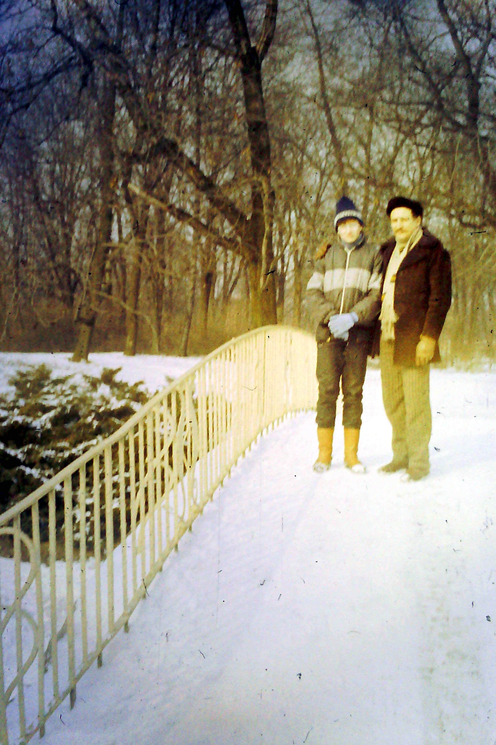Poprzedni obrazek Następny obrazek ParkPoniat-1 1986 – ja z Adasiem, Park Poniatowskiego w Łodzi zimą.