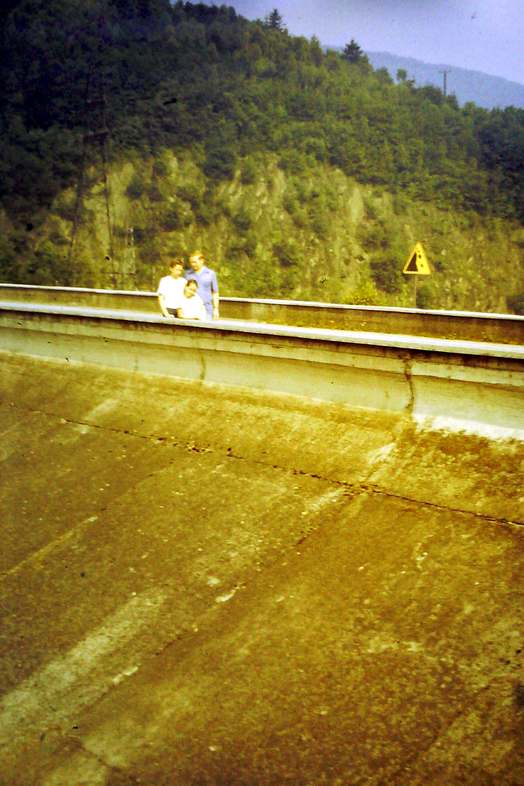 Poprzedni obrazek Następny obrazek Rożnów 1981 – Ania i Adaś z wujkiem Zbyszkiem na tamie zbiornika w Rożnowie, podczas odwiedzin na kolonii letniej w Marcinkowicach.