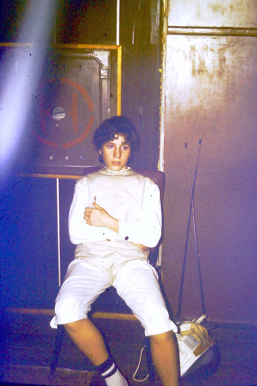 Poprzedni obrazek Następny obrazek ANIAm 1986 – Ania odpoczywa po szermierczym pojedynku zawodów okręgowych młodzików.
