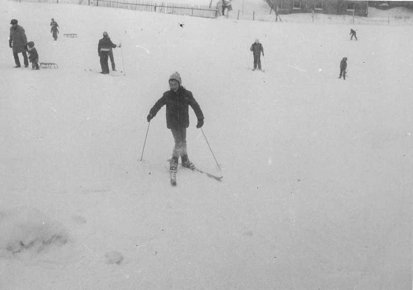Poprzedni obrazek Następny obrazek Wisła87-4 1984 – ferie zimowe w Ustroniu Śląskim i Wiśle. Ania podchodzi na oślej łączce w Wiśle.