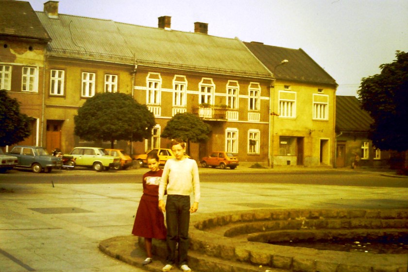 Poprzedni obrazek Następny obrazek Żywiec-1 1983 – Ania i Adaś na rynku w Żywcu podczas wycieczki z Ustronia przez Wisłę, Istebnę, Koniaków.