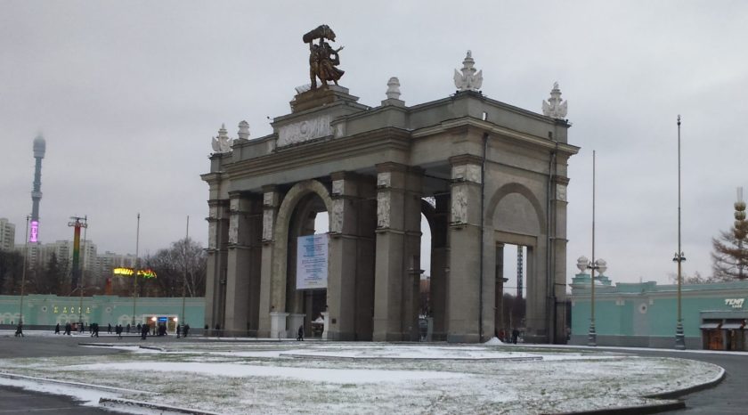 Poprzedni obrazek Następny obrazek brama Główna brama wejściowa Wystawy Osiągnięć CCCP, centralna część WWOZR w Moskwie, tereny wystawowe współcześnie – 2024 zdjęcie pobrane z WIKI.