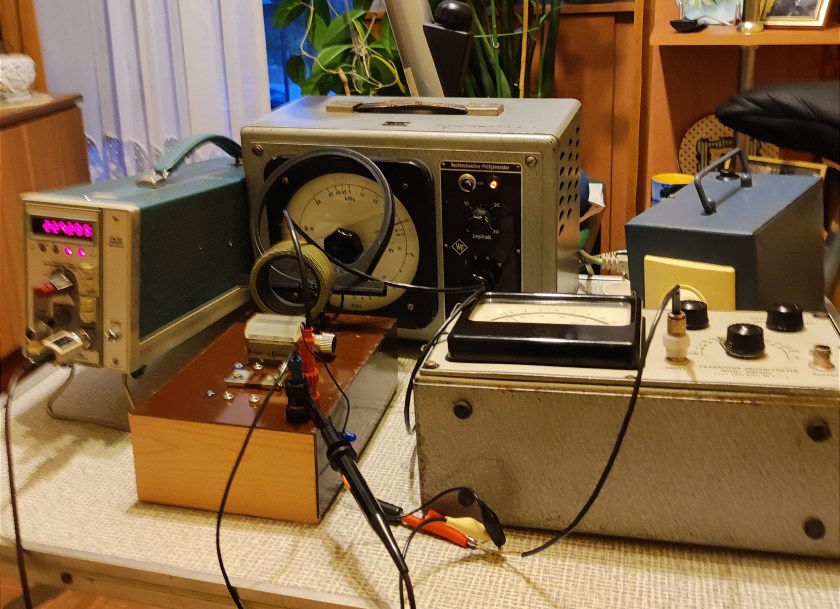 Poprzedni obrazek Następny obrazek FrezFD225 Domowe laboratorium, strojenie obwodów rezonansowych, miliwoltomierz tranzystorowy INCO, 30Hz-300kHz, 1mV-300V, generator sinusoidalny RWG-2, 50 Hz-500 kHz, częstościomierz cyfrowy Tektronix.