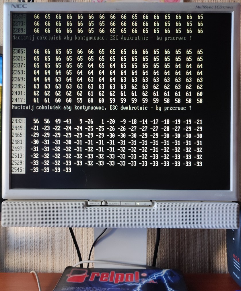 Poprzedni obrazek Następny obrazek FuiSCEN-21 2025 – Uprzednio wybrana opcja „Dane-podgląd tabel”, wpisana nazwa pliku i ENTER, ukazuje się trzecia oraz czwarta tabela danych cyfrowych przebiegu napięcia. Po weryfikacji naciskamy kolejny raz potwierdzenie Enter.