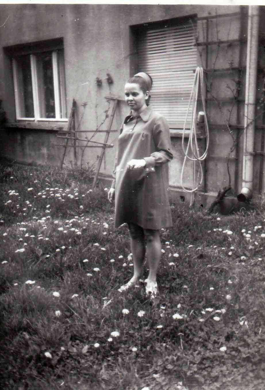 Jagódka w ciąży na Helskiej, wiosną 1970 roku.