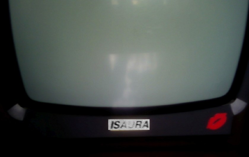 ISAURA – Początek lat 90′ tych, zdjęcie przedstawia własnoręcznie wykonany monochromatyczny monitor TV którego obudowę stanowi adaptowane plastikowe wiaderko do noszenia płynów. Monitor miał wejście analogowe audio wideo m. cz. i wyjście kablowe BNC poprzez modulator magnetowidowy w. cz.