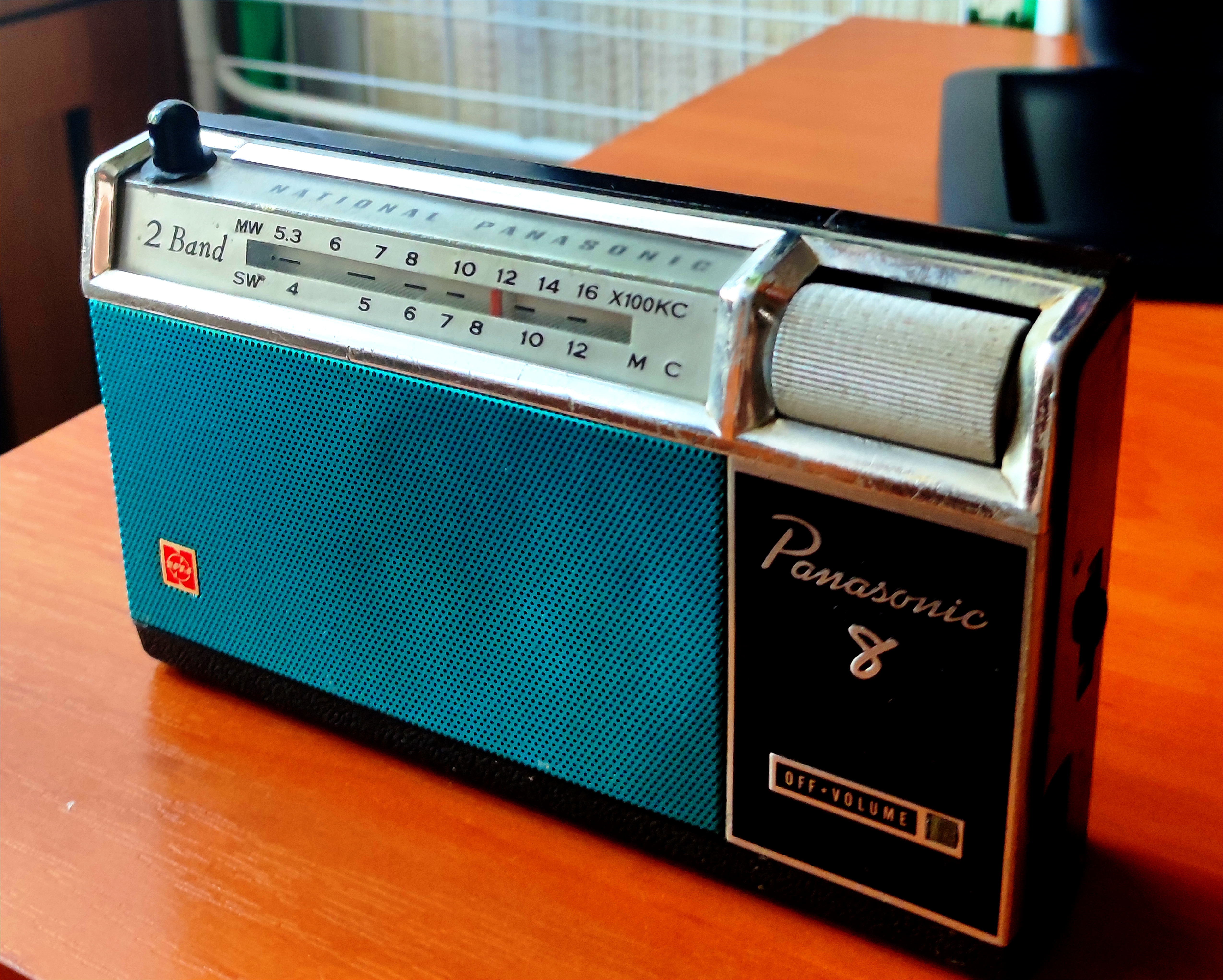 Poprzedni obrazek Następny obrazek Panasonic8T-1 1975 – produkowany od 1965 roku, ośmiotranzystorowy, dwuzakresowy „japończyk” , na krótkich świetnie odbierał RWE.
