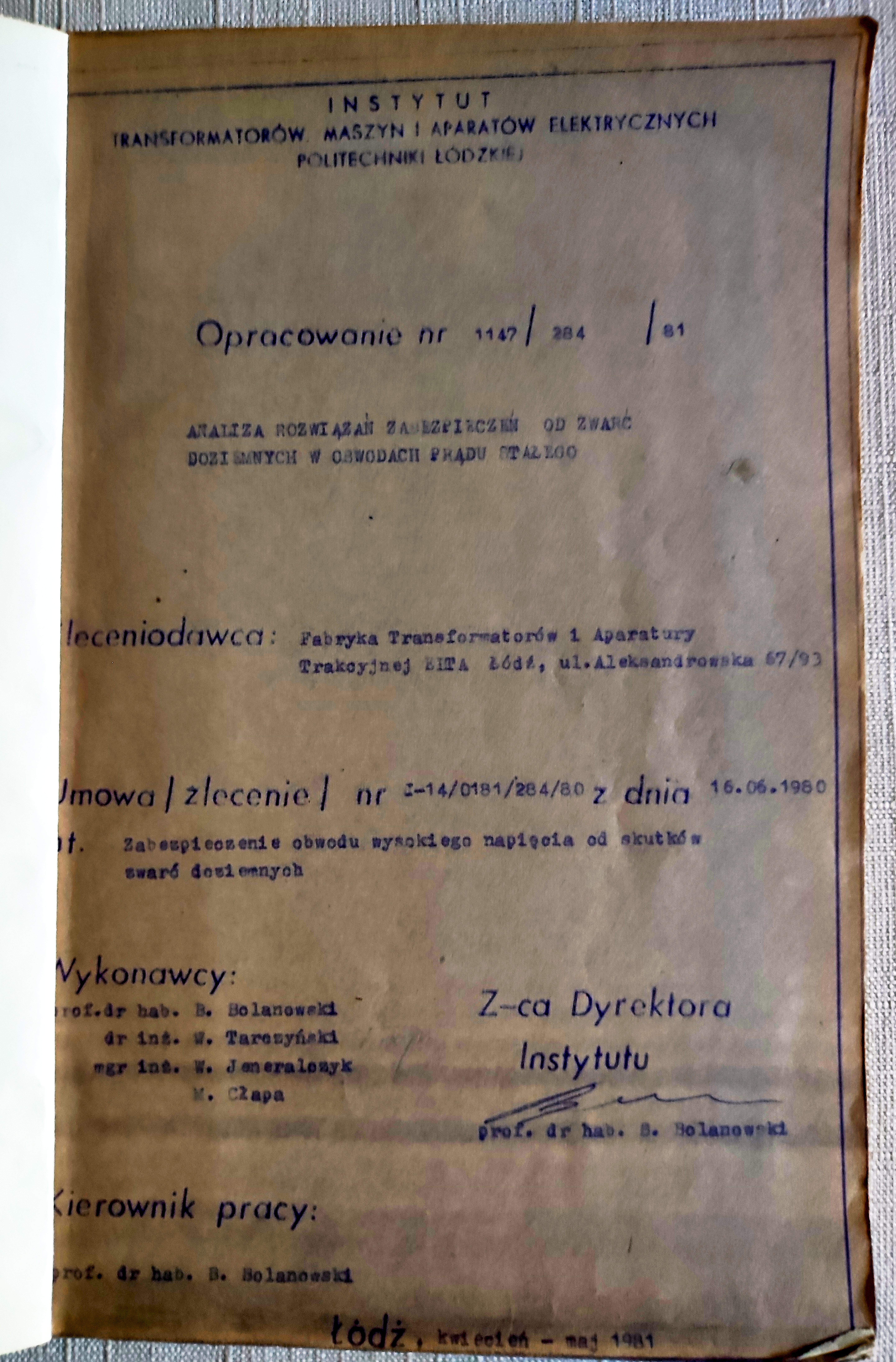 Strona tytułowa Opracowania PŁ z 1980 roku.