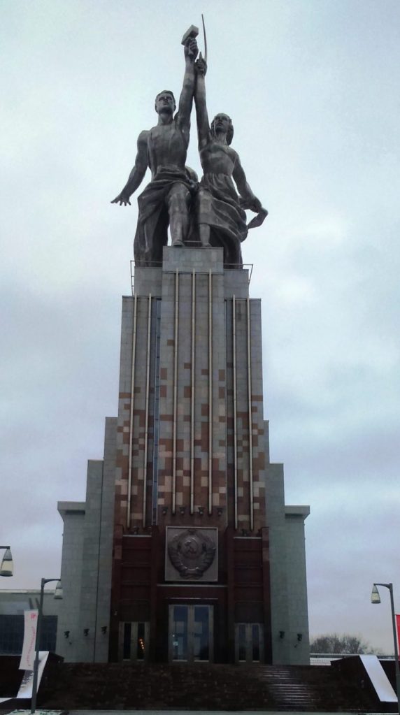 Poprzedni obrazek Następny obrazek SierpMłot Monument Robotnik z młotem, Kołchoźnica z sierpem, Wystawy Osiągnięć CCCP, centralna część WWOZR w Moskwie, tereny wystawowe współcześnie – 2024 zdjęcie pobrane z WIKI.