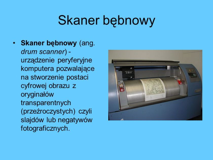 Poprzedni obrazek Następny obrazek SkanerBębnN Na zdjęciu; część roboczą naświetlania liniowego wyciągów w barwach drukarskiej triady: yellow, magenta, cyan, black – jako składników wyjściowych (wynikowych) analizy oryginału.