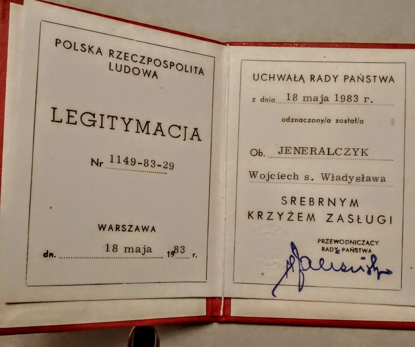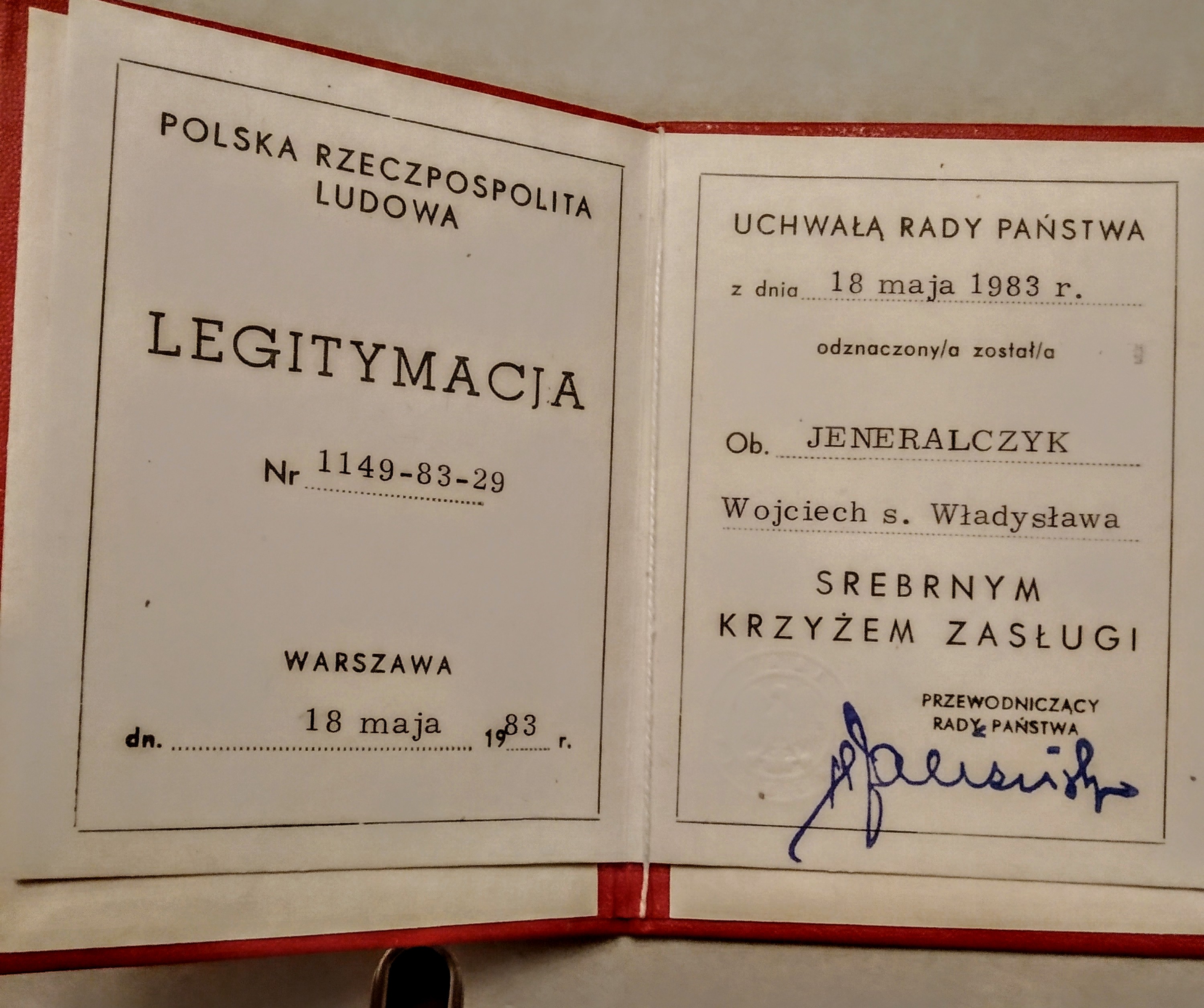 Srebrny krzyż zasługi PRL z maja 1983 roku.
