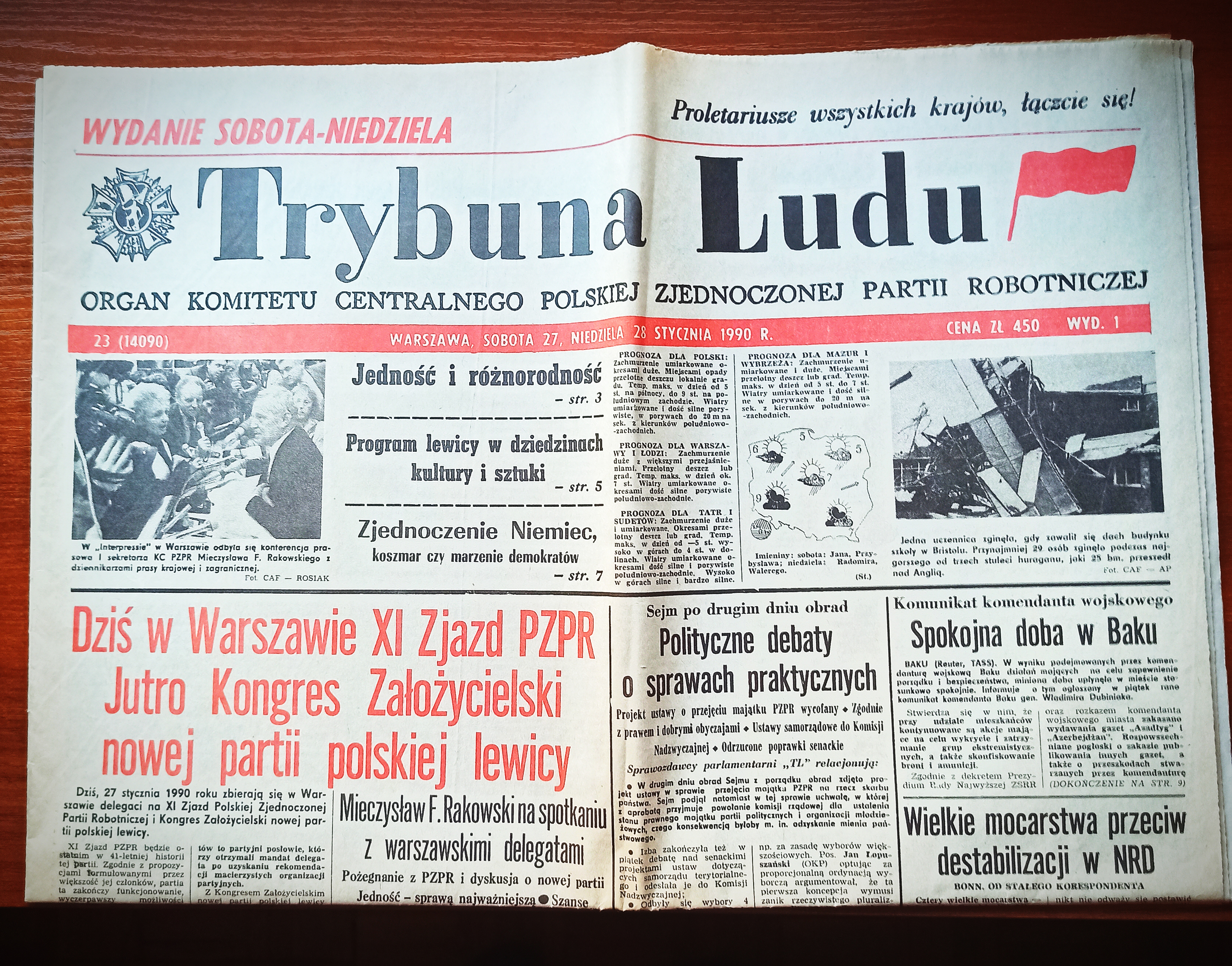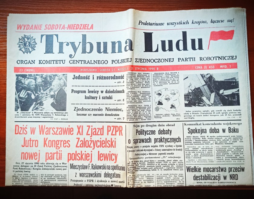 Poprzedni obrazek Następny obrazek TL Fotografia pierwszej strony Trybuny Ludu z wydania magazynu weekendowego 27/28 stycznia 1990 roku