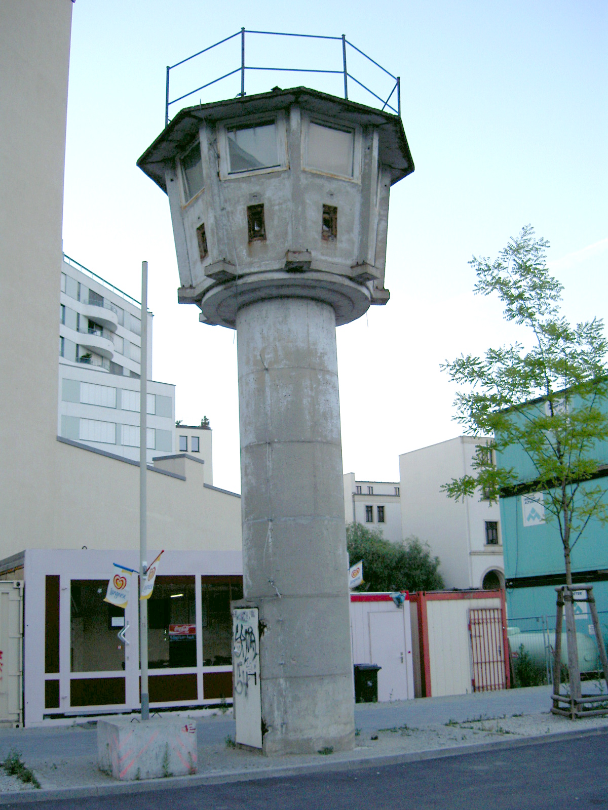Poprzedni obrazek Następny obrazek TowerTypBT11 2005 – Wachturm (Typ BT-6) an der Berliner Mauer in der Nähe des Potsdamer Platzes, Wieża strażnicza (Typ BT-6) przy Murze Berlińskim w pobliżu Potsdamer Platz 2005. Autor : Denis Apel / flyingpixel.de / Wikipedia